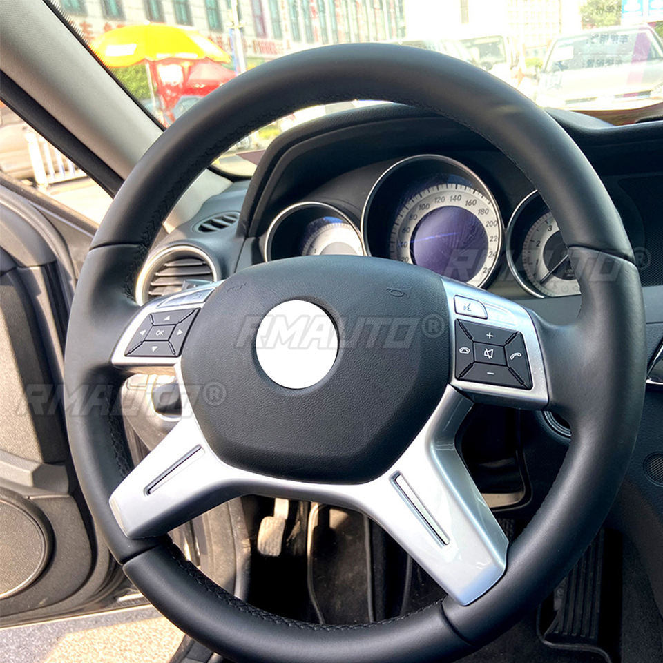 Couvre-cadre de volant de voiture compatible avec Mercedes-Benz Classe C, Classe E, GLK, CLS, Classe M, W204, W212, 2011, 2012, 2013, 2014, argent