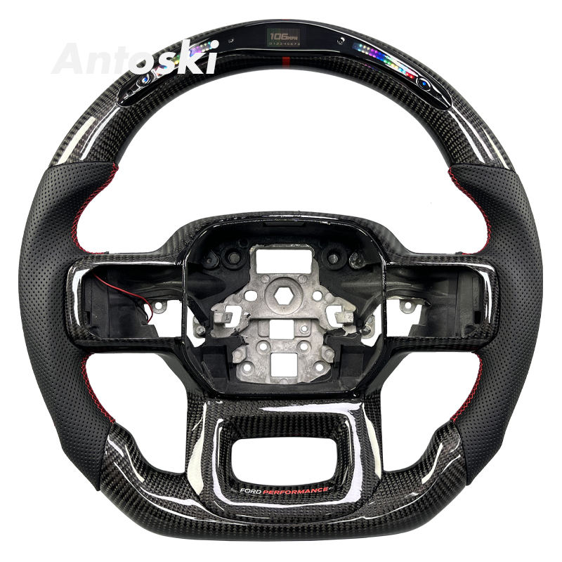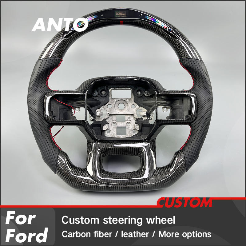 Volant de direction de voiture pour Ford Raptor F-150 F150 XLT F250 2021-2025 Volant personnalisé en fibre de carbone véritable avec écran LED intelligent
