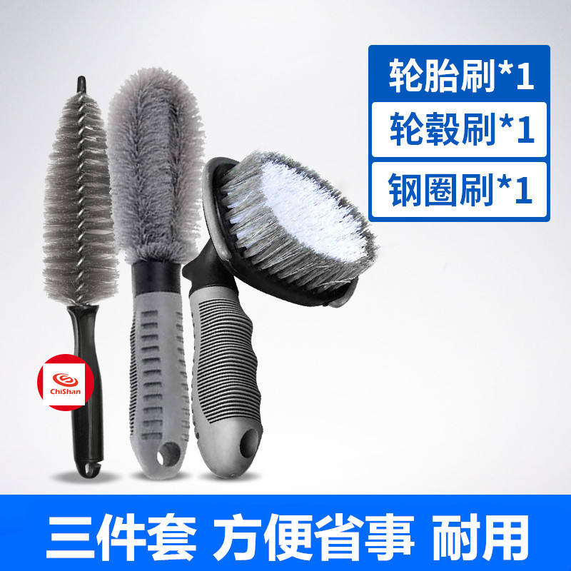 Kit de brosses pour jantes de voiture, gris, 3 pièces, outils de nettoyage pour l'entretien des véhicules