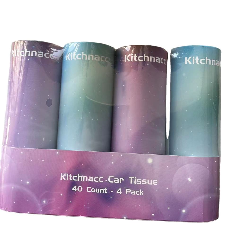 Porte-mouchoirs pour voiture Cylindre 4 unités (bidons), 50 mouchoirs par cylindre, convient aux porte-gobelets de voiture, portable, boîte à mouchoirs ronde pour voiture