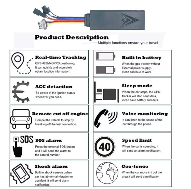 Nom du modèle:TK004 2g traceur GPS pour voiture