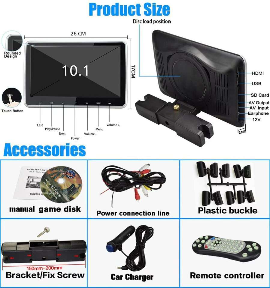 Lecteur DVD vidéo de voiture 10,1 pouces personnalisé noir beige gris