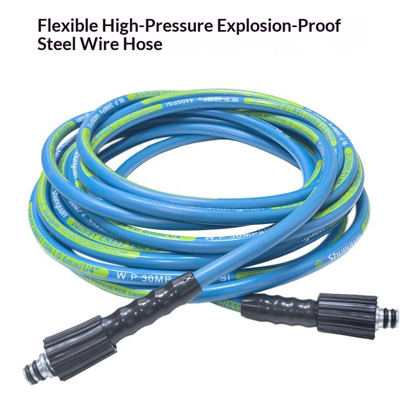 Tuyau d'arrosage haute pression pour lave-auto, flexible et lisse, en fil d'acier, anti-explosion, avec pistolet ultra haute pression et tuyau de sortie en caoutchouc