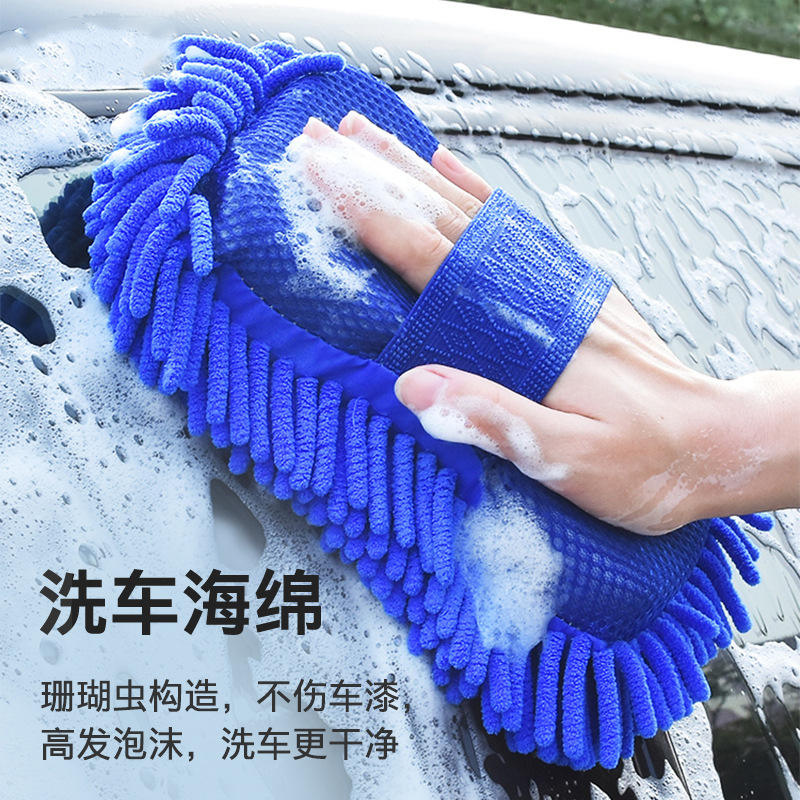 Éponge de lavage de voiture en microfibre corail bleue, outil de nettoyage automobile
