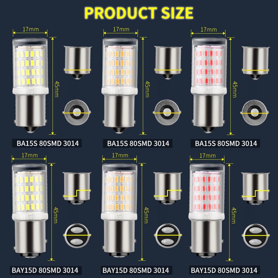 Signal de voitures, blanc, rouge ambre, ampoule 1156 80SMD, lumière de secours pour freinage, clignotant, Led Ba15s 1157 BAY15D P21/5W 3014, 12V