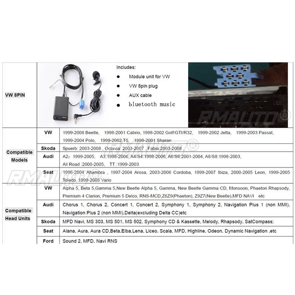 Adaptateur USB Bluetooth pour voiture, câble audio Aux-in pour Audi A3 8L 8P A4 B5-B7 A6 4B A8 4D