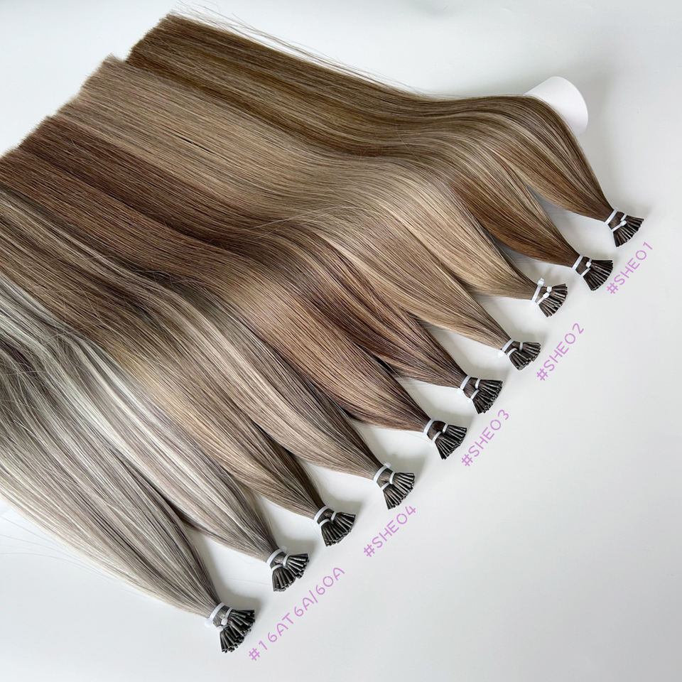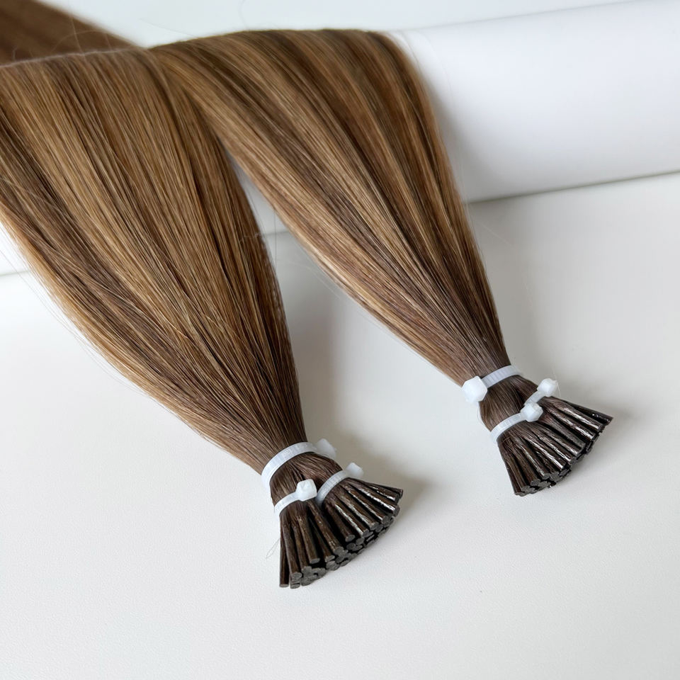 Caramel Cappuccino Balayage Couleur Micro Anneau Bâton I Conseils Pré Collé Cuticule Intact Qualité Remy Extensions de Cheveux Humains En Gros