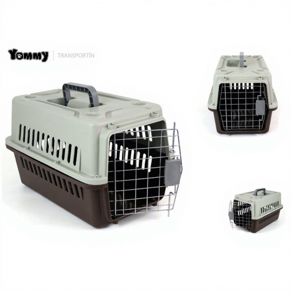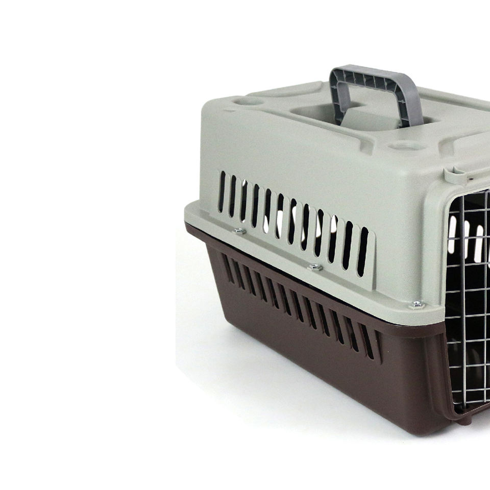 Caisse de transport métallique portable couleur caramel et caramel gris pour petits animaux