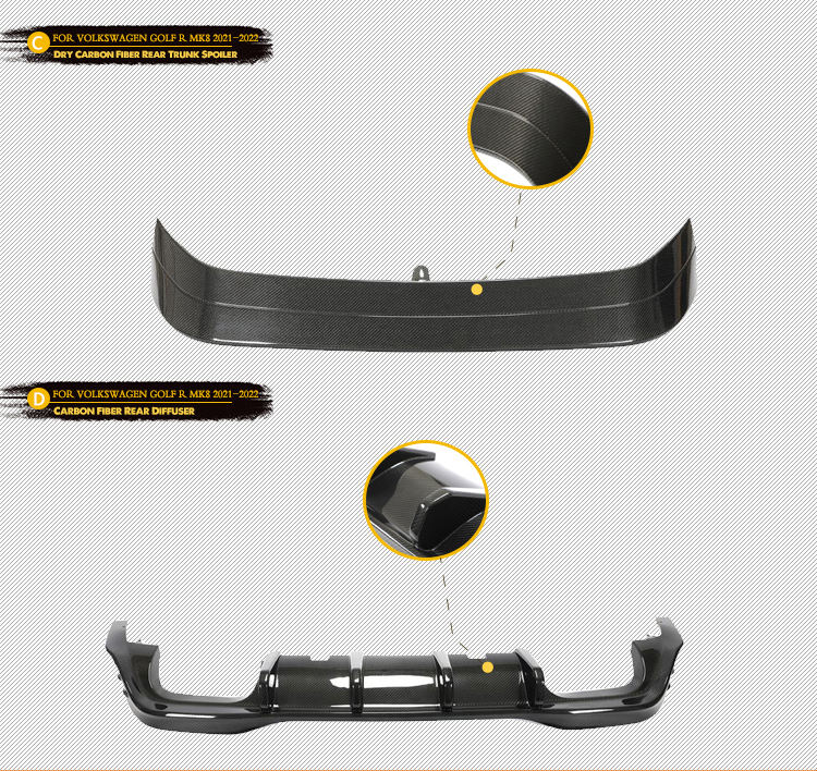 Kit de carrosserie Golf 8 R en Fiber de carbone pour VW Golf MK8 R Hatchback 4 portes 2021-2022