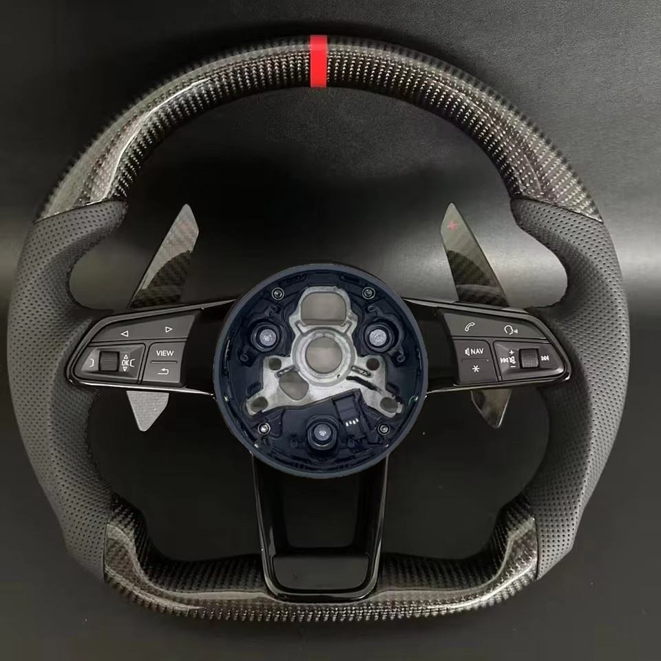 Volant de voiture LED en fibre de carbone adapté pour Audi R8 TT Mk2 Mk3 8n RS TTS Ttrs Rs3 Rs6 RS4 RS5 RS7 A3 A4 A5 A6 A7 A8 A1 Q3 Q5 Q7