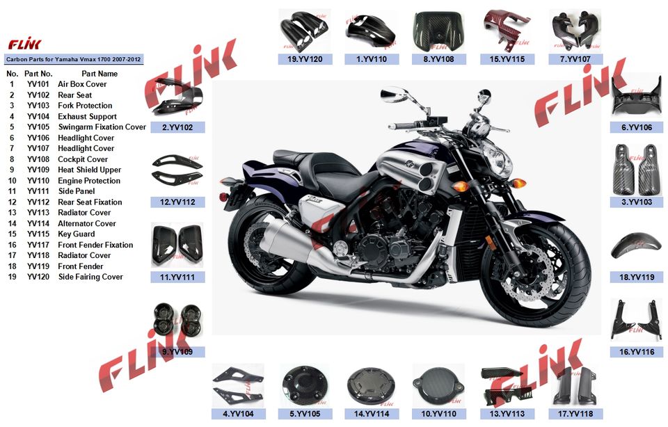Embout de silencieux de moto en fibre de carbone pour Yamaha Vmax 1700