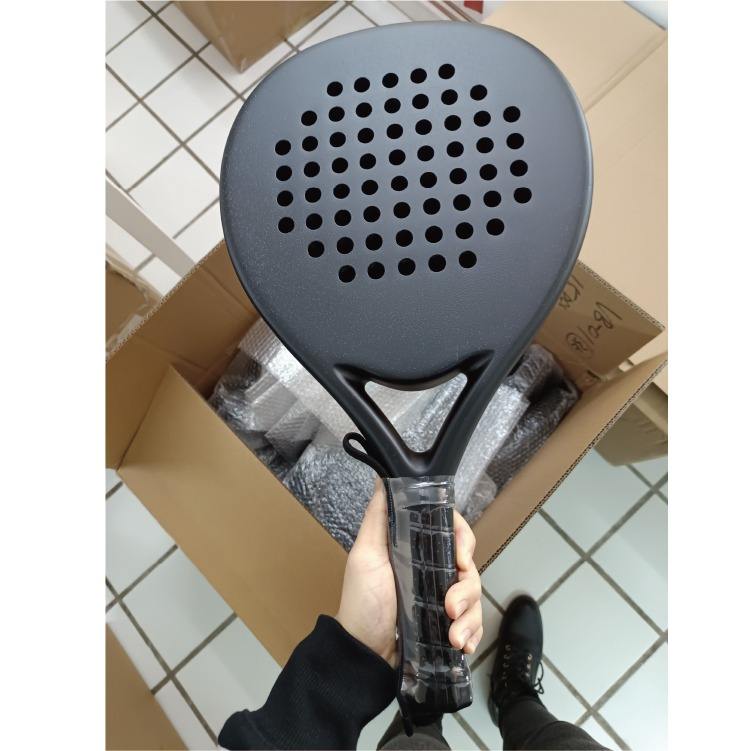 Raquette de padel en fibre de carbone en forme de larme | Housse en cuir personnalisée OEM | Entraînement professionnel léger et fait main