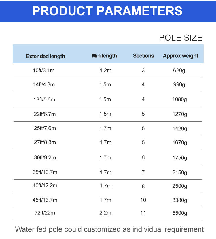 Équipement de nettoyage de vitres poteaux alimentés en eau poteau de carbone personnaliséNom du produit
