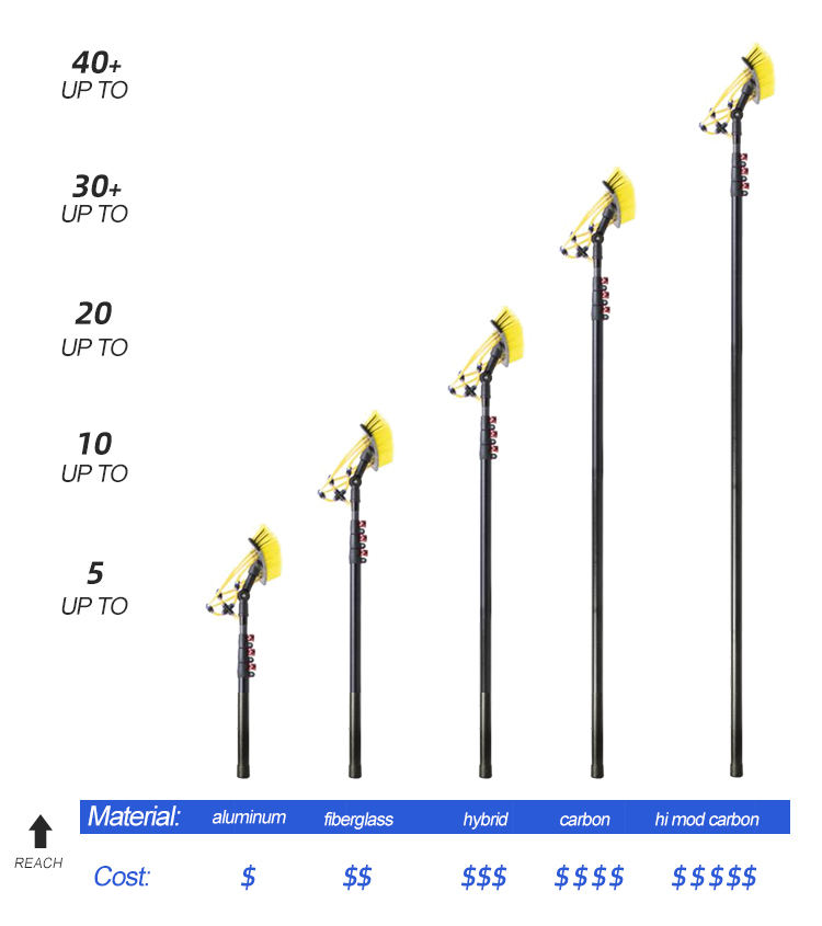 Équipement de nettoyage de vitres poteaux alimentés en eau poteau télescopique en fibre de carbone personnalisé