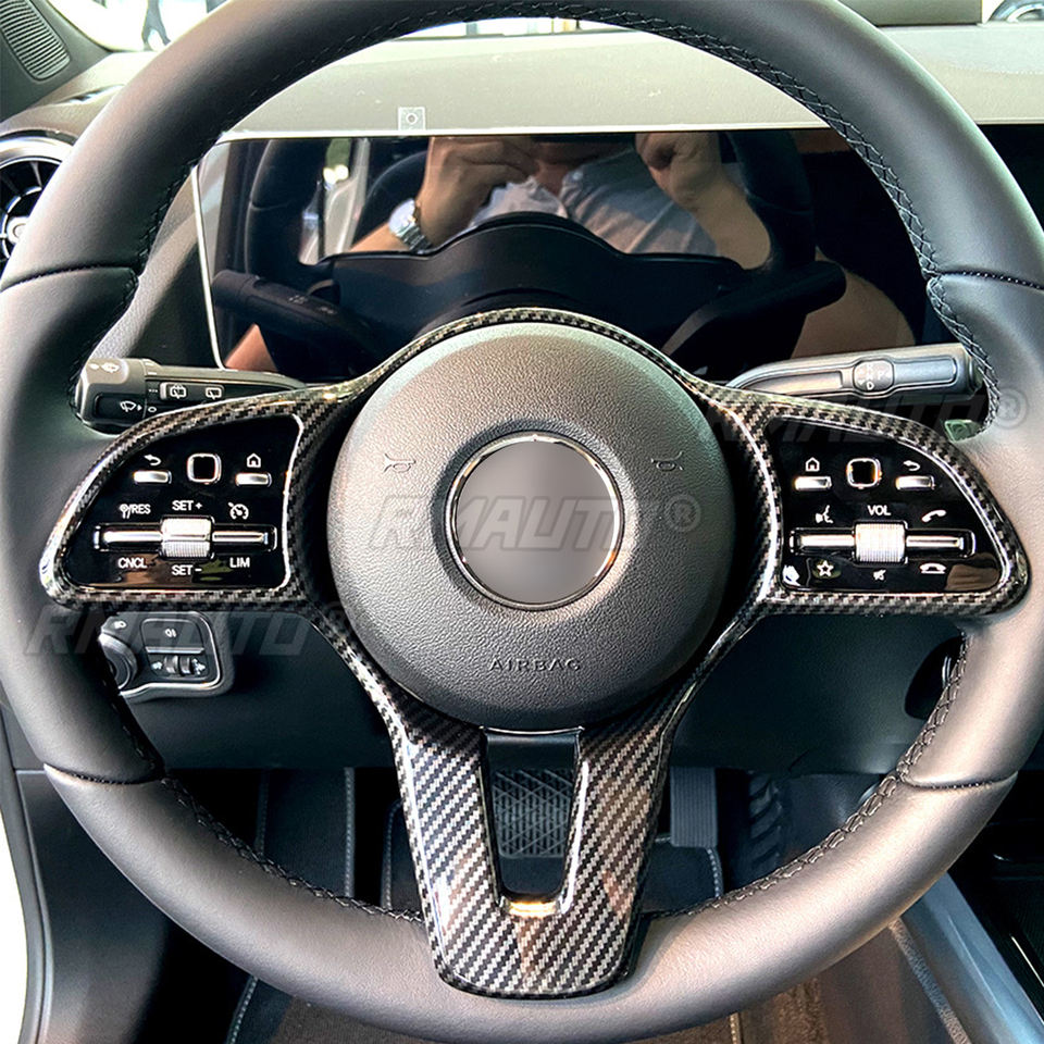 Couverture de panneau de volant de voiture aspect carbone pour Mercedes Benz W177 W247 W205 W213 X247 C257 X253 W167 X167 2019-2021