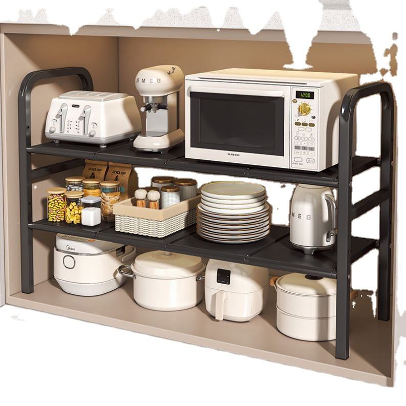 Étagère de rangement en acier au carbone pour cuisine et salle de bain, type sur pied, antirouille, 2 niveaux, réglable, pour comptoir, pour vaisselle, durable