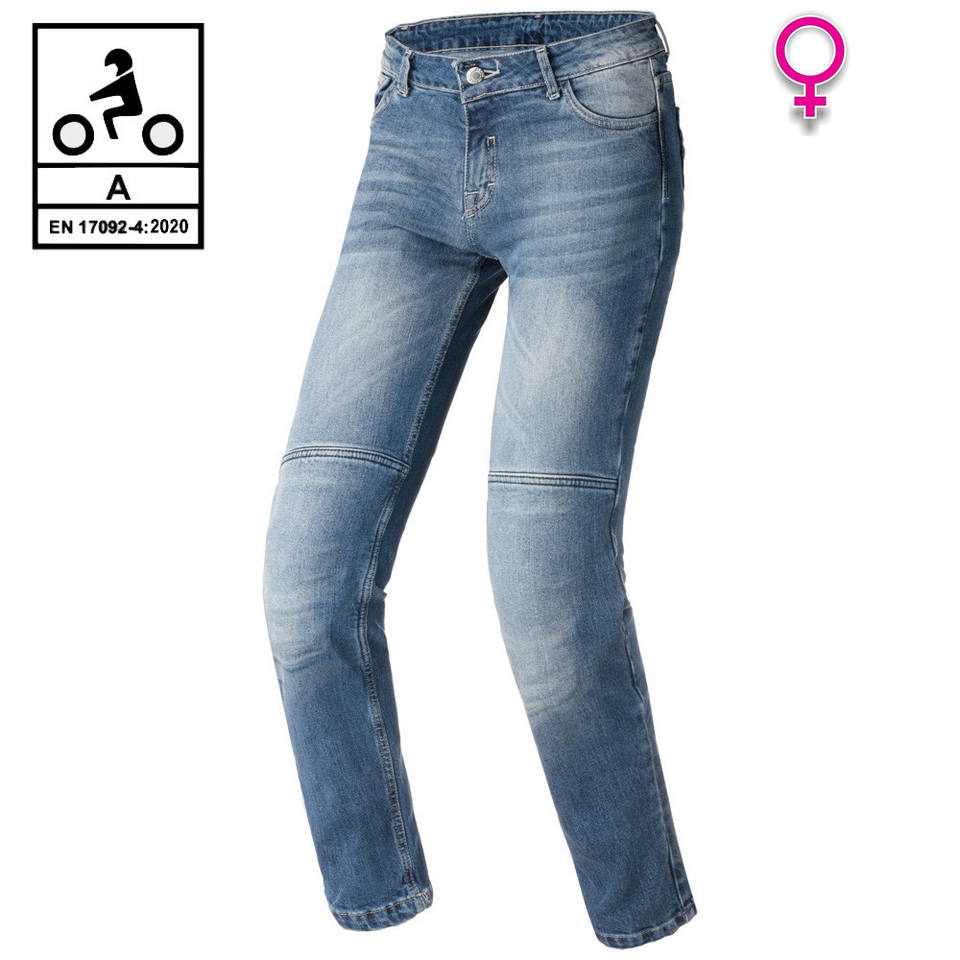 Carburo Women's Motorcycle Jeans TORIN CE Certified with Aramid Fiber Blue Super Stone 42