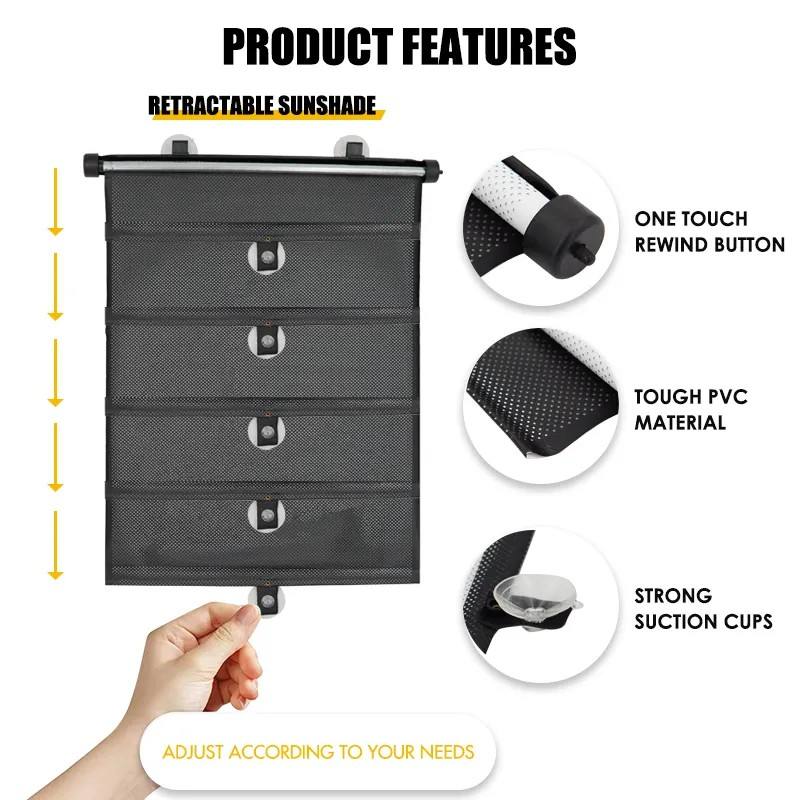 Carclean - Protection solaire pour vitres de voiture, pare-soleil en maille UV PP pliable, taille universelle, 2 pièces, pare-soleil rétractable pour vitres de voiture