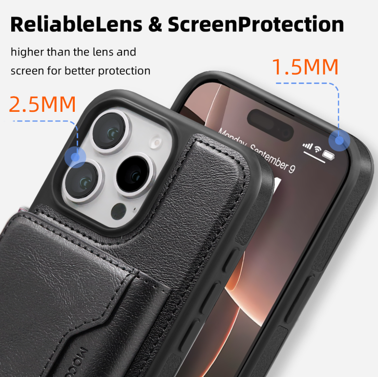 Étui en cuir magnétique antichoc avec fentes pour cartes pour iPhone 17 Air, 17 Pro Max, 16, 15, 14, 13, 12, 11