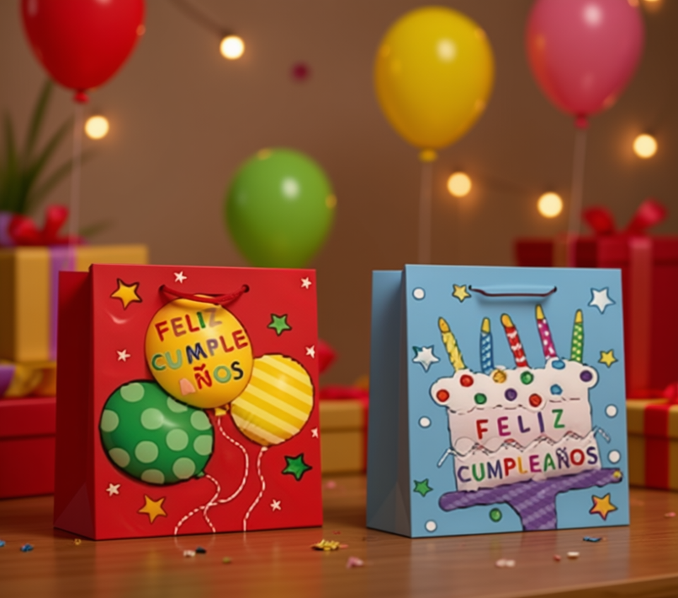 Sacs cadeaux en carton 18x23 cm, design aléatoire, emballage cadeau durable
