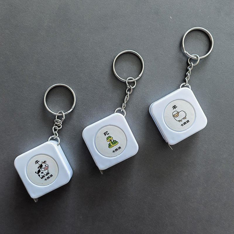 Porte-clés Cardi, mini ruban à mesurer 1m, ABS, acier inoxydable, impression numérique, thème animal du zodiaque, écologique, métrique et impérial