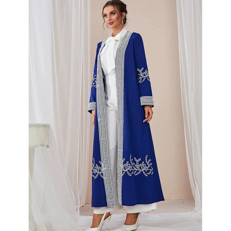Cardigan à lacets patchwork brodé à manches longues robe longue Abaya femmes robe musulmane