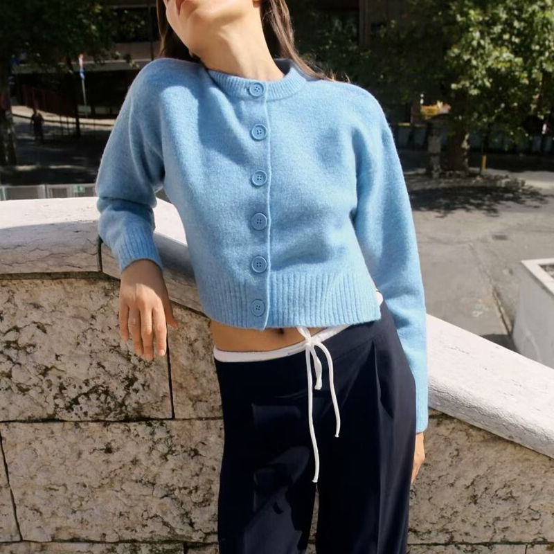Pull cardigan d'hiver confortable pour femme avec logo sur le devant, en coton doux, couleur unie