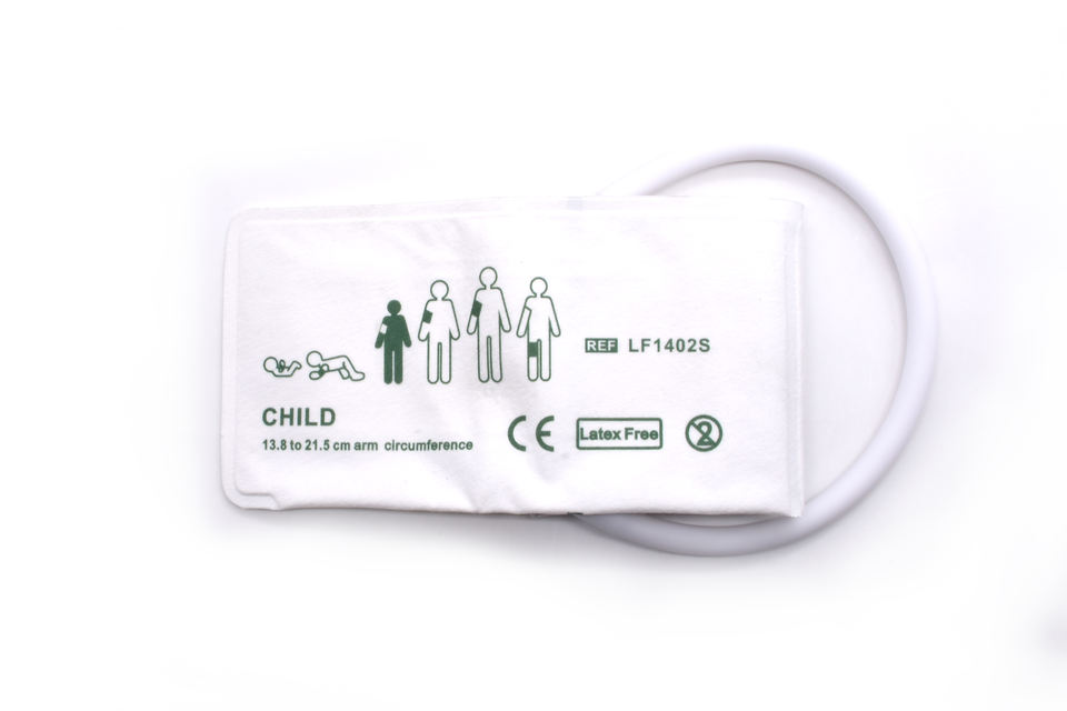 Manchette NIBP jetable en usine soignée taille pédiatrique 13.8-21.5cm manchette de pression artérielle non tissée à double tube sans latex