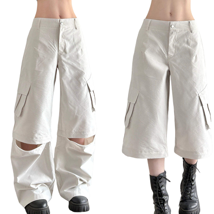 Pantalon de travail cargo convertible en short, minimaliste, en toile unie, coupe droite mi-longue, coupe ample, tissé, coupe décontractée, coupe-vent et séchage rapide, pour l'été