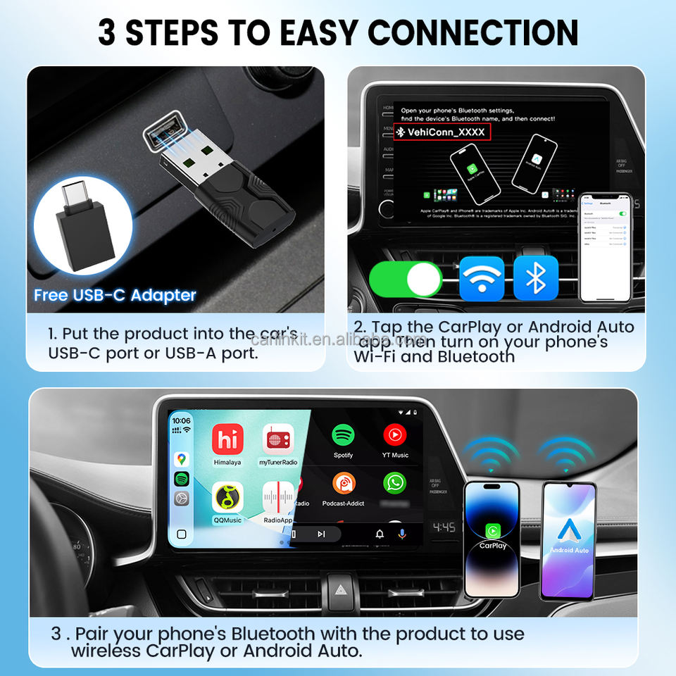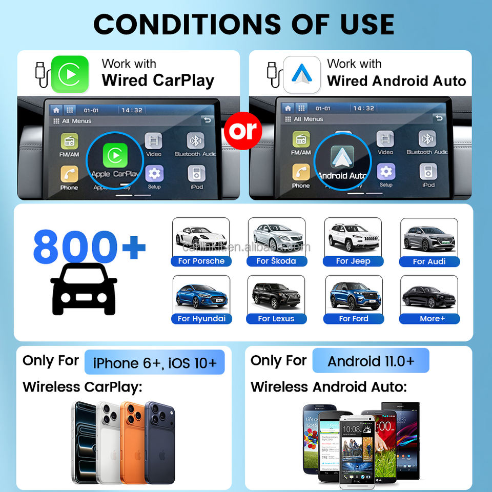 Modèle de voiture compatible:Toutes les voitures équipées de CarPlay filaire ou d'Android Auto filaire d'origine.