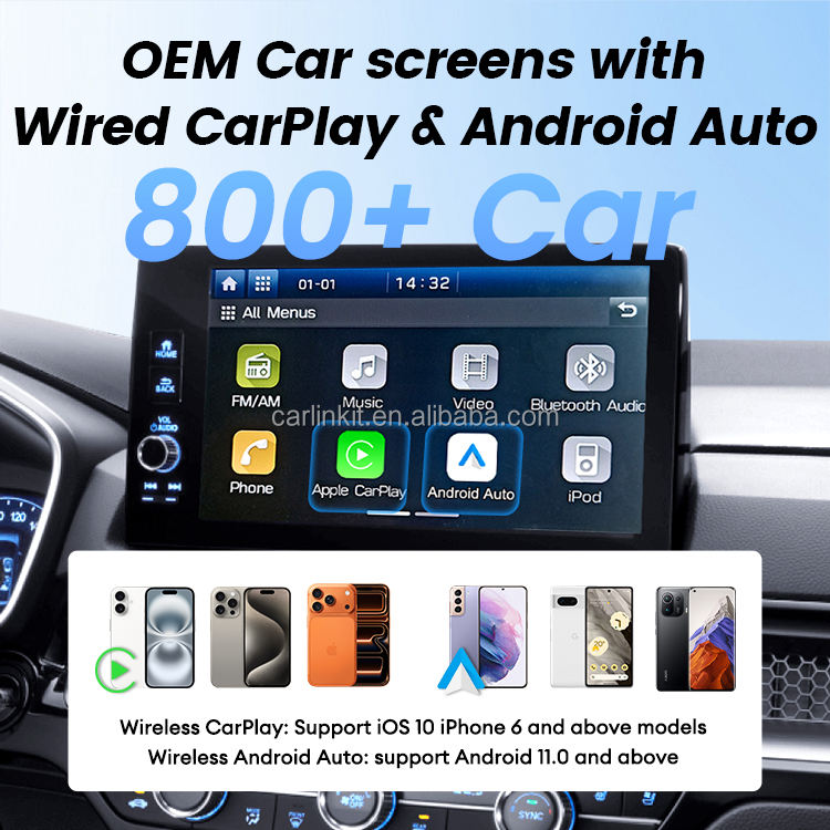 Modèle de voiture compatible:Toutes les voitures équipées de CarPlay filaire ou d'Android Auto filaire d'origine.