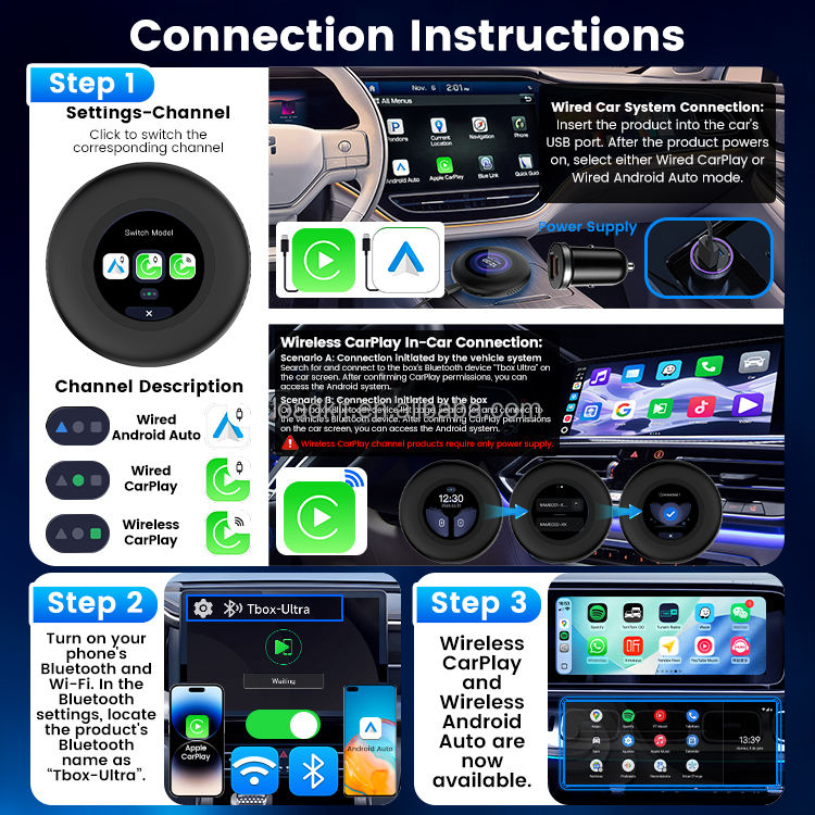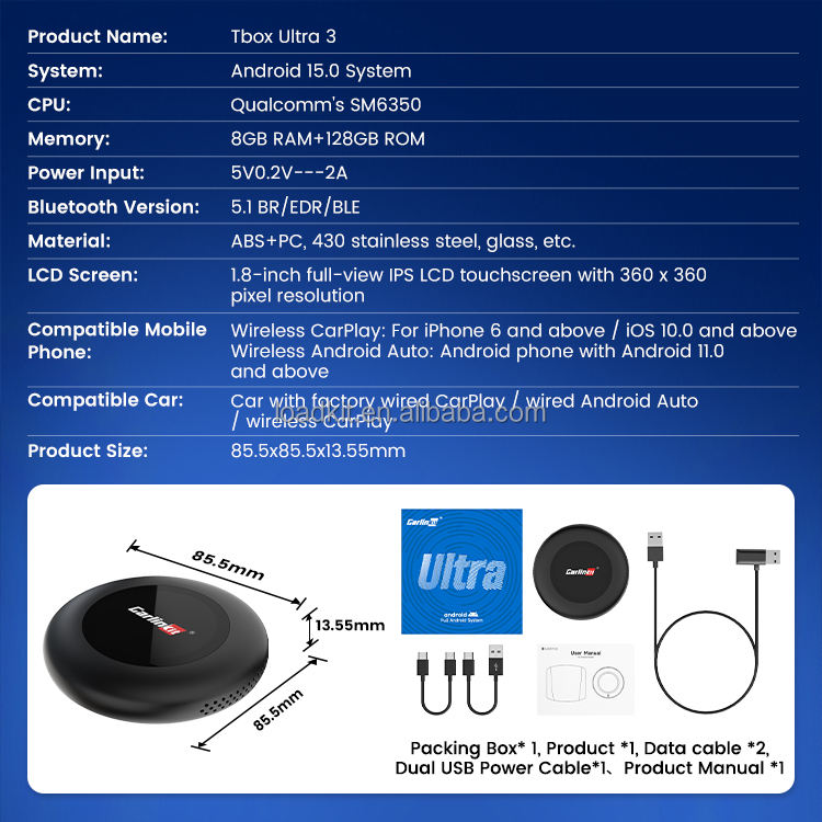 Carlinkit Tbox Ultra3 Smart 5G Wireless Carplay Ai Box Android 15 Car Tv Box CarPlay Dongle pour BMW Carplay Adapter