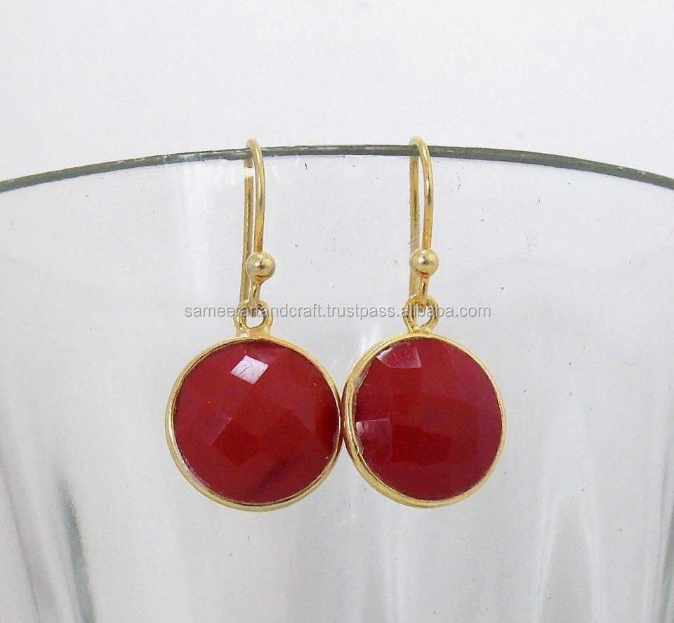 Nom de bijoux:Boucles d'oreilles faites main plaqué or de pierres précieuses de carnaline