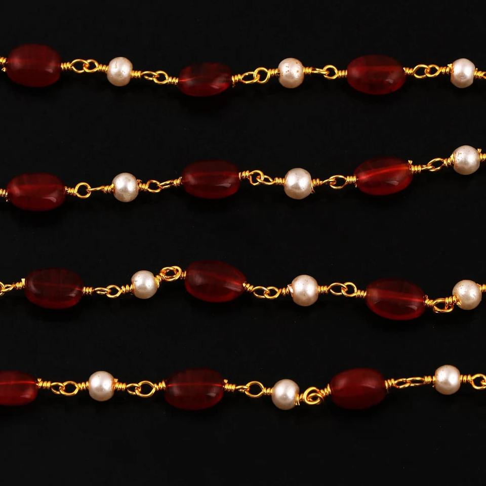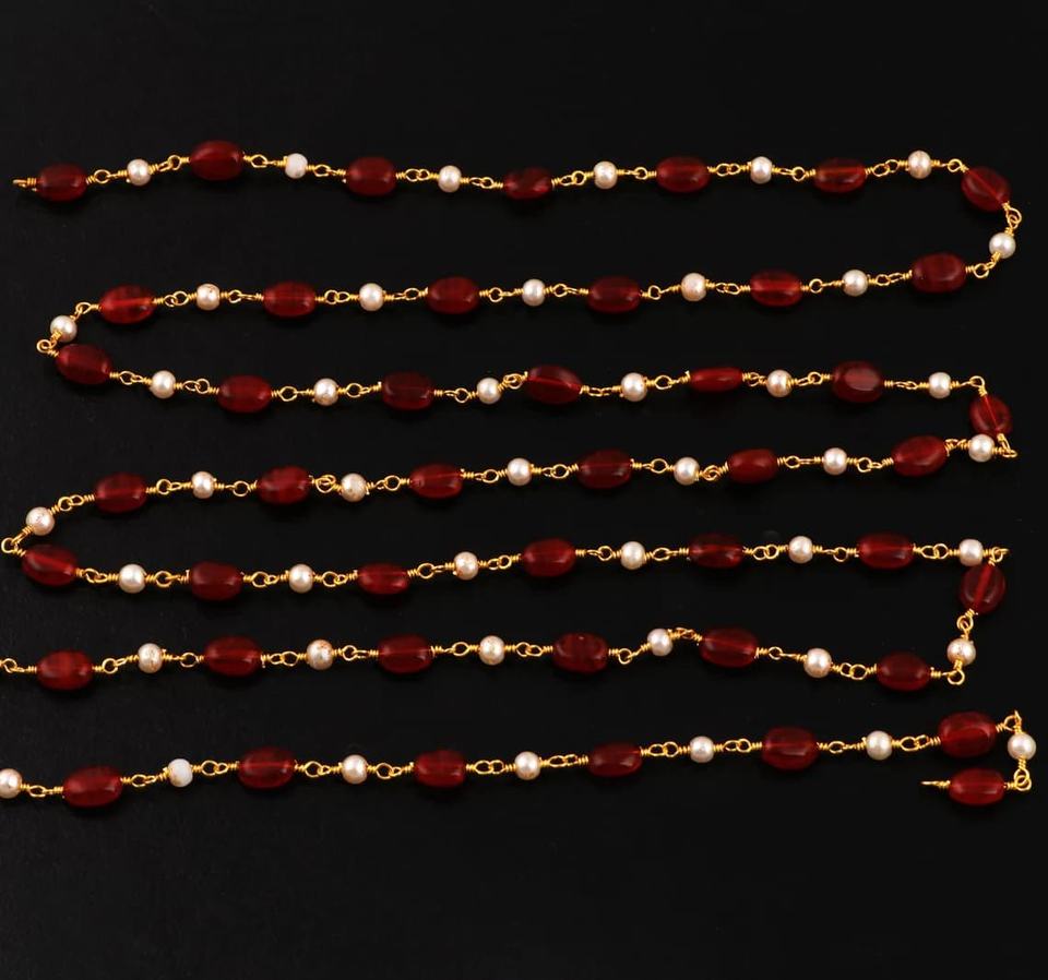Product name:Carnelian Hydro & Pearl Rosary Style Beaded Chain