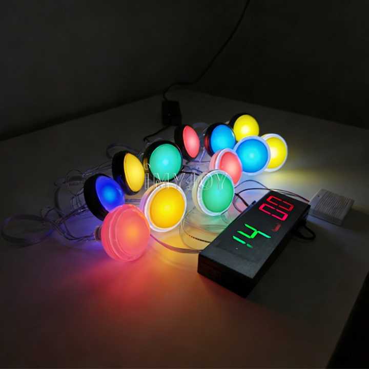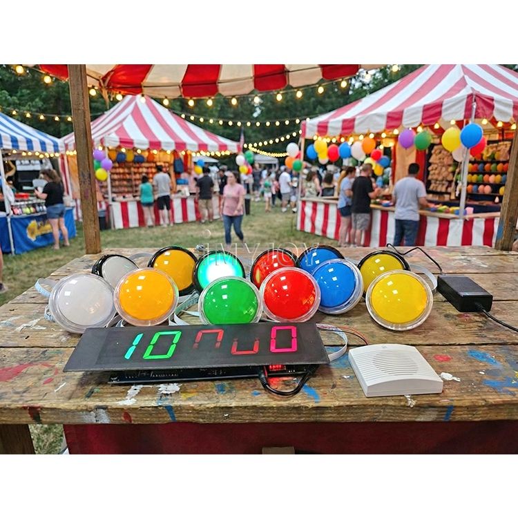Jeu de réaction électronique interactif pour stand de carnaval avec bouton lumineux LED à pousser et éclairage central