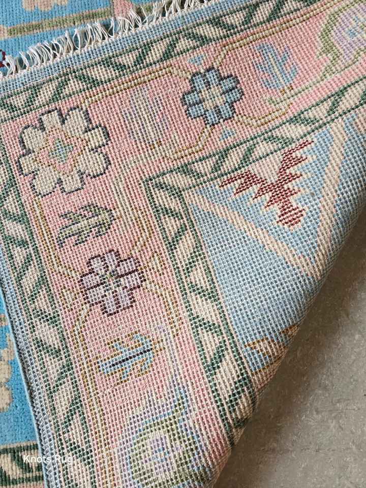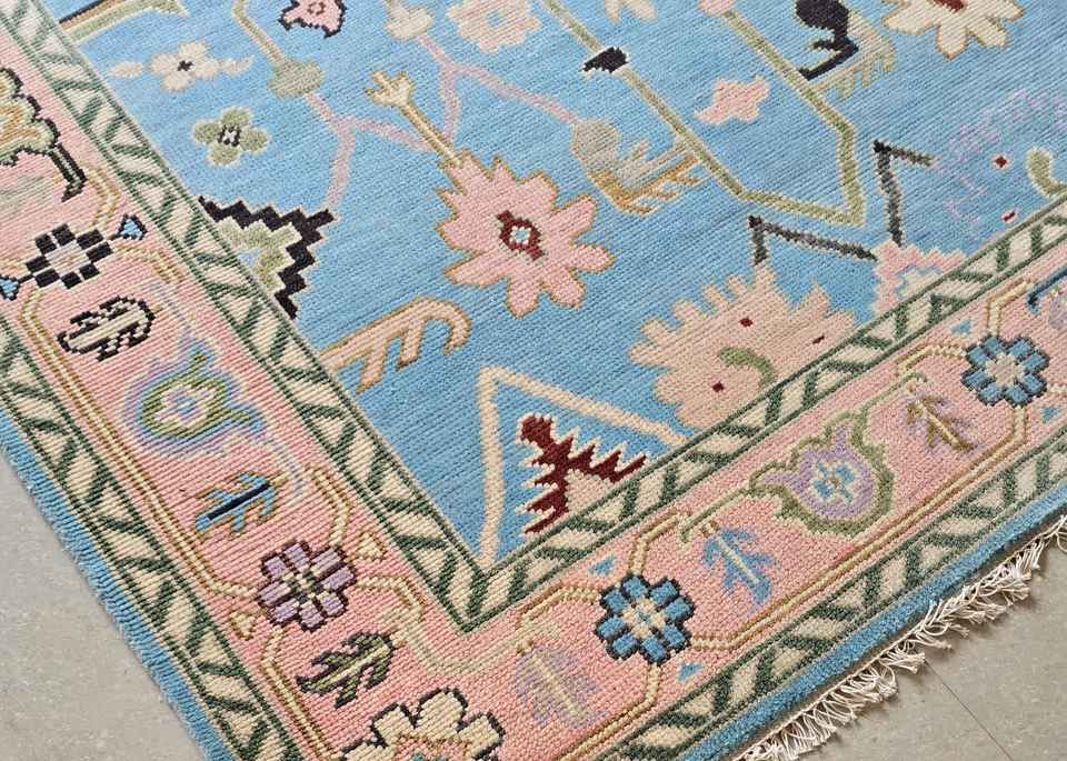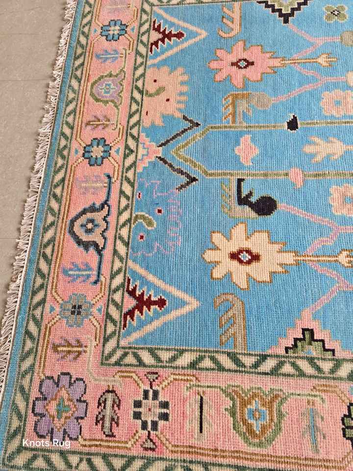 HandKnotted Oushak Rugs Persian Rugs:8x10 Blue Pink Wool Oushak Rug Antique Handknitted Colorful