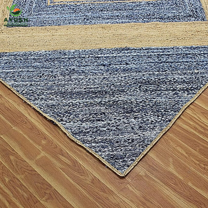 Carpet for bedroom rectangular made of 100% jute & canvas material hand braided custom rugs