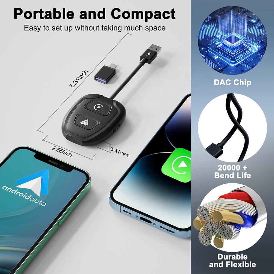 Carplay Dongle Adaptateur sans fil Apple CarPlay et Android Auto pour voiture filaire Carplay Android Auto Convert Car Play