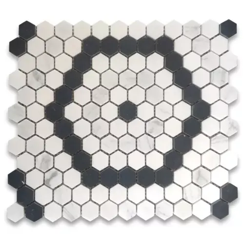 Carrara White Marble 1\" Hexagon Riverside Tile Thassos Black Honed Sintered Stone Product-New Title