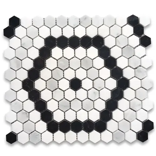 Carrelage Hexagonal en Marbre Blanc de Carrare, Finition en Calcite Naturelle Polie en Noir, pour Sol de Villa, 1"