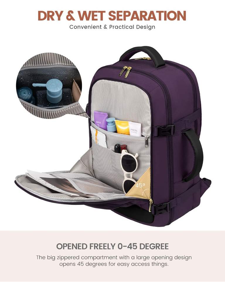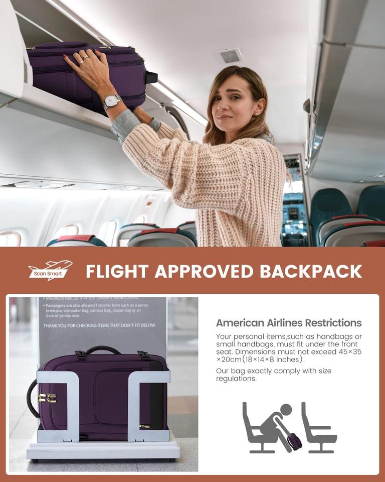 Sac à dos de voyage à main approuvé pour le vol, sac à dos pour articles personnels de 40 L, sac à dos pour ordinateur portable de 17 pouces, sac de week-end, sac de voyage d'une nuit, sac à dos de jour