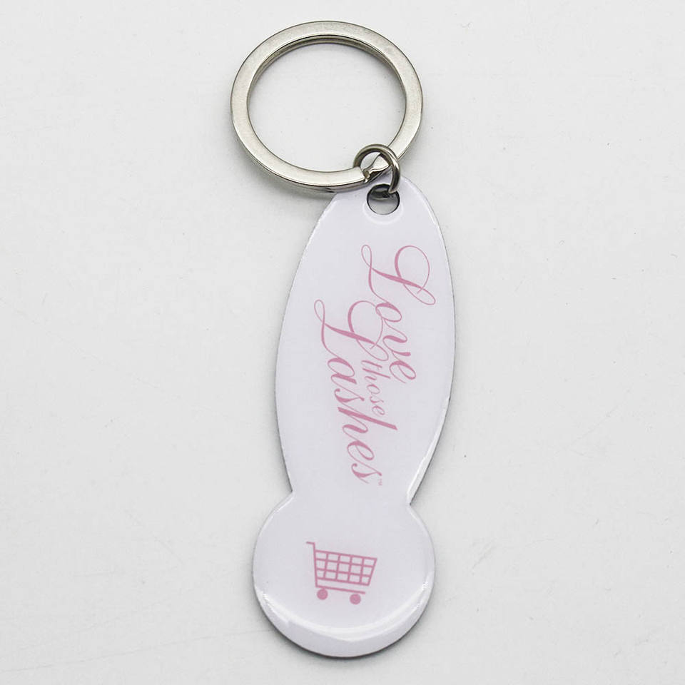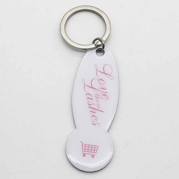 Porte-clés de chariot à jetons Porte-clés portable Porte-clés de chariot de supermarché Sac Opp Conception personnalisée Porte-clés monopole CMJN Impression UV