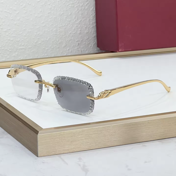 Lunettes de soleil photochromiques sans monture Cartierring, style de marque de luxe tendance 2025, design pour hommes et femmes, polarisées personnalisées, haute qualité
