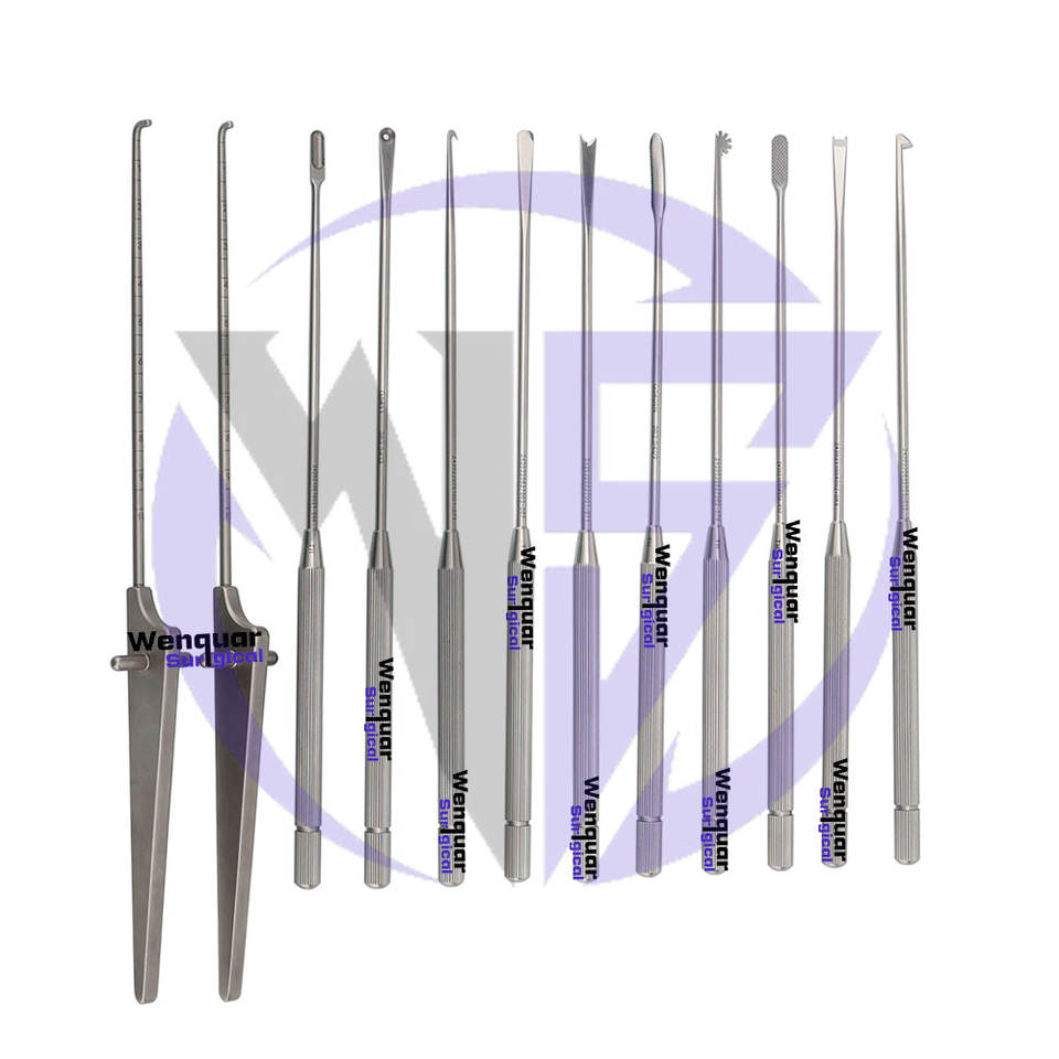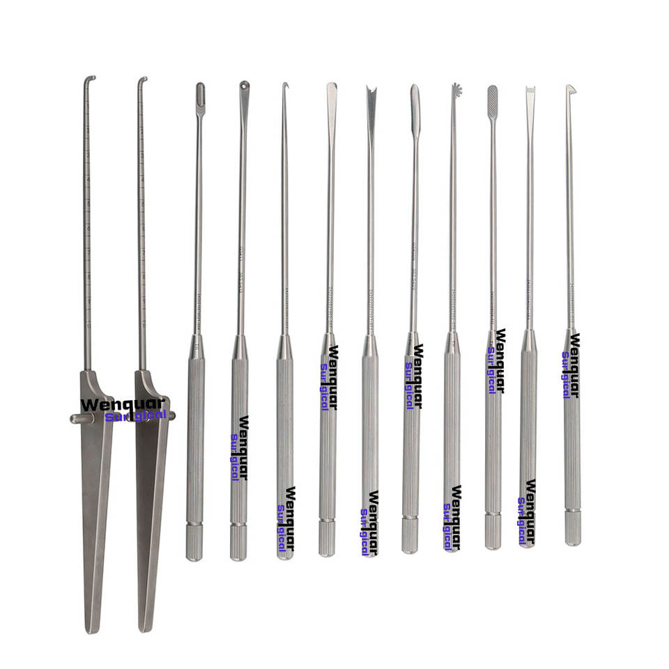 Ensemble d'instruments chirurgicaux orthopédiques pour arthroscopie du genou Wenquar : curettes, limes osseuses et sonde à lame banane pour cartilage