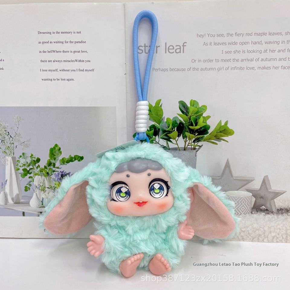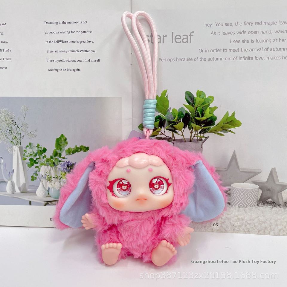 Dessin animé 4 pouces colle visage bébé lapin poignet corde série porte-clés pendentif mignon peluche jouet poupée pour le soulagement du Stress