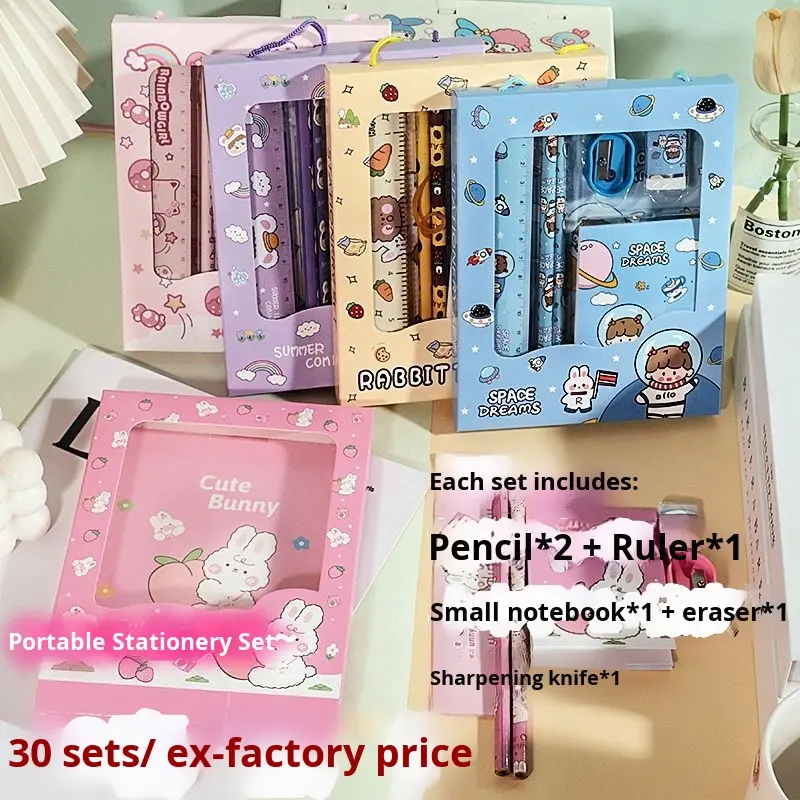 Ensemble d'art portable de 6 pièces de dessin animé pour les élèves du primaire papeterie de retour à l'école maternelle ensemble de fournitures d'apprentissage