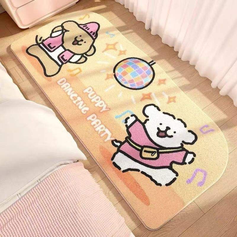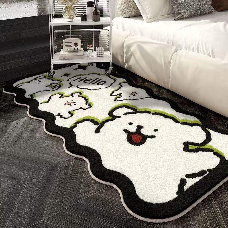Tapis de chevet en peluche Alien de dessin animé, tapis haut de gamme en polyester imitation cachemire pour chambre de filles, résistant au froid et aux taches