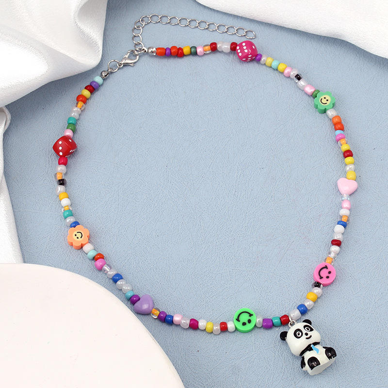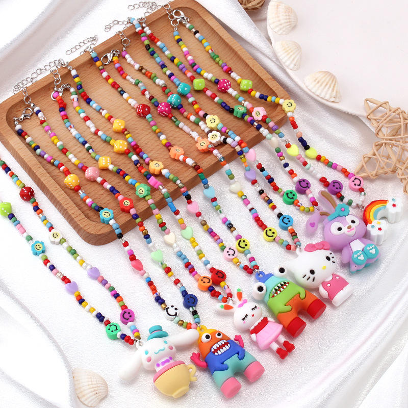 Collier avec pendentif animal de dessin animé, chaîne perlée colorée, bijoux de fête pour enfants et adolescents, accessoire de mode