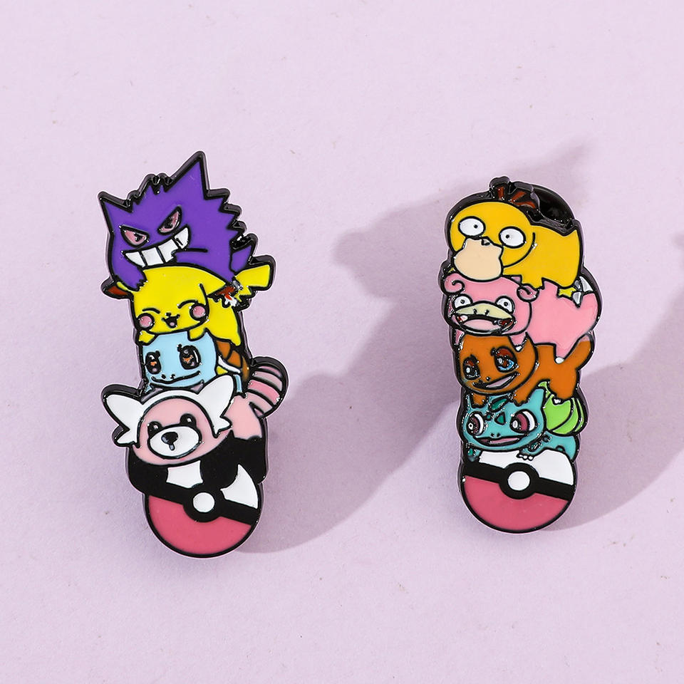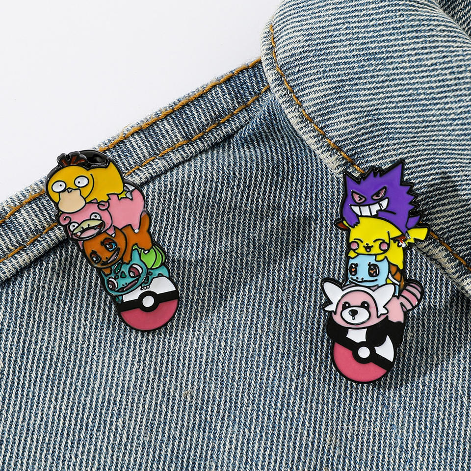 Dessin animé Animation Pokémon broche en métal créatif or alliage broche accessoires 25mm gouttes d'huile canard écureuil croix décoration