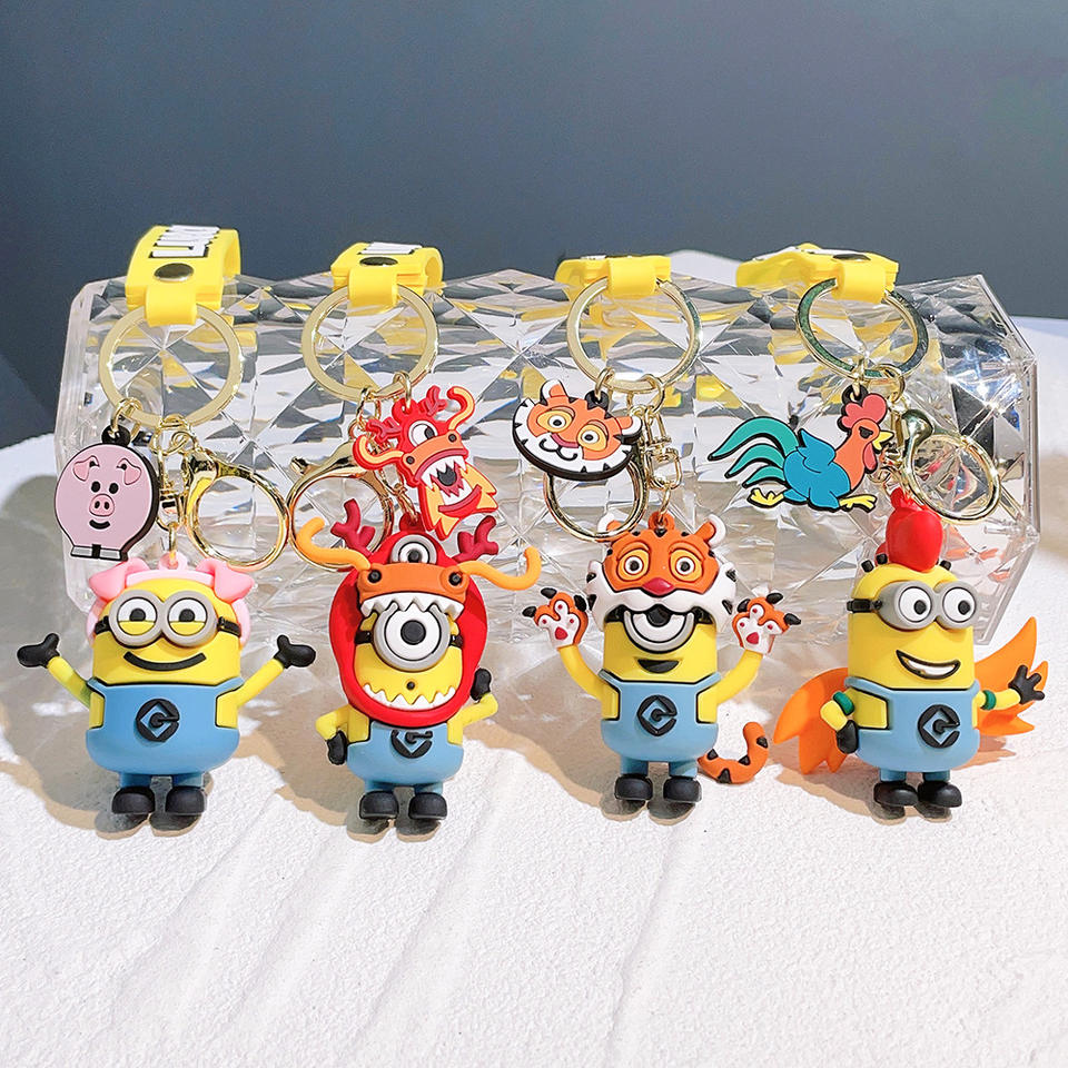 Dessin animé Animation douze zodiaque Minions porte-clés exquis mignon en caoutchouc voiture pendentif en gros porte-clés en caoutchouc